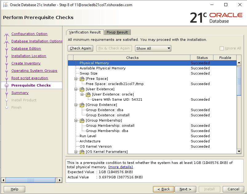 This completes all the prerequite steps and now we are all set to kick off the installation.
