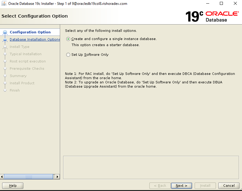 [oracle@oracledb19col8 ~]$ cd /u01/app/oracle/product/19c/dbhome_1 [oracle@oracledb19col8 dbhome_1]$ ./runInstaller