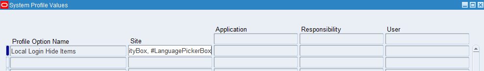 The value of the profile option should be a comma-separated value of the identifiers that you want to hide from the Login Page. Each element should be preceded by a ‘#’ or pound sign.