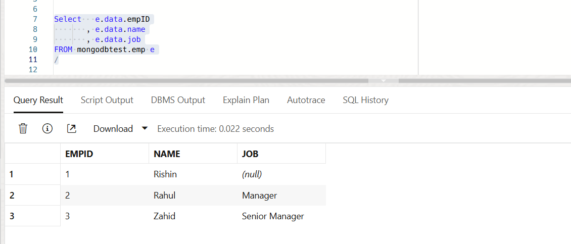 We can query the collection, that we created from MongoDB through the SQL client.