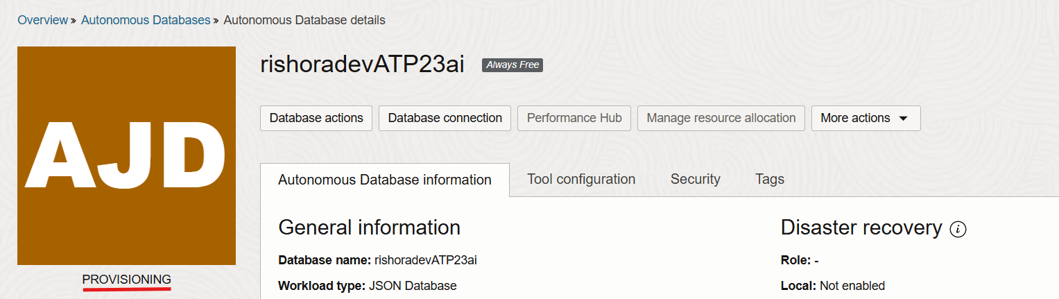 Once the Autonomous Database is provisioned, the status should change to Available.