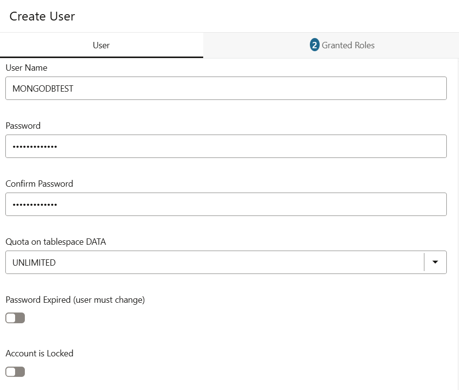 Click on the Create User button. This should create the Test Autonomous Database User.