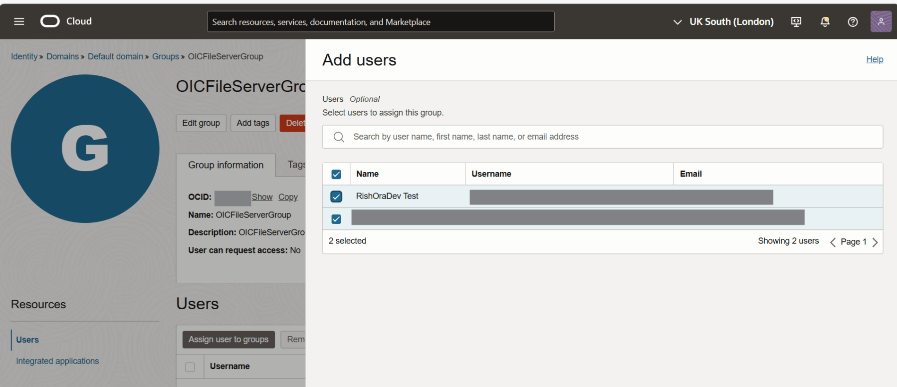 Click Add. You should now see the users listed in the group details page.