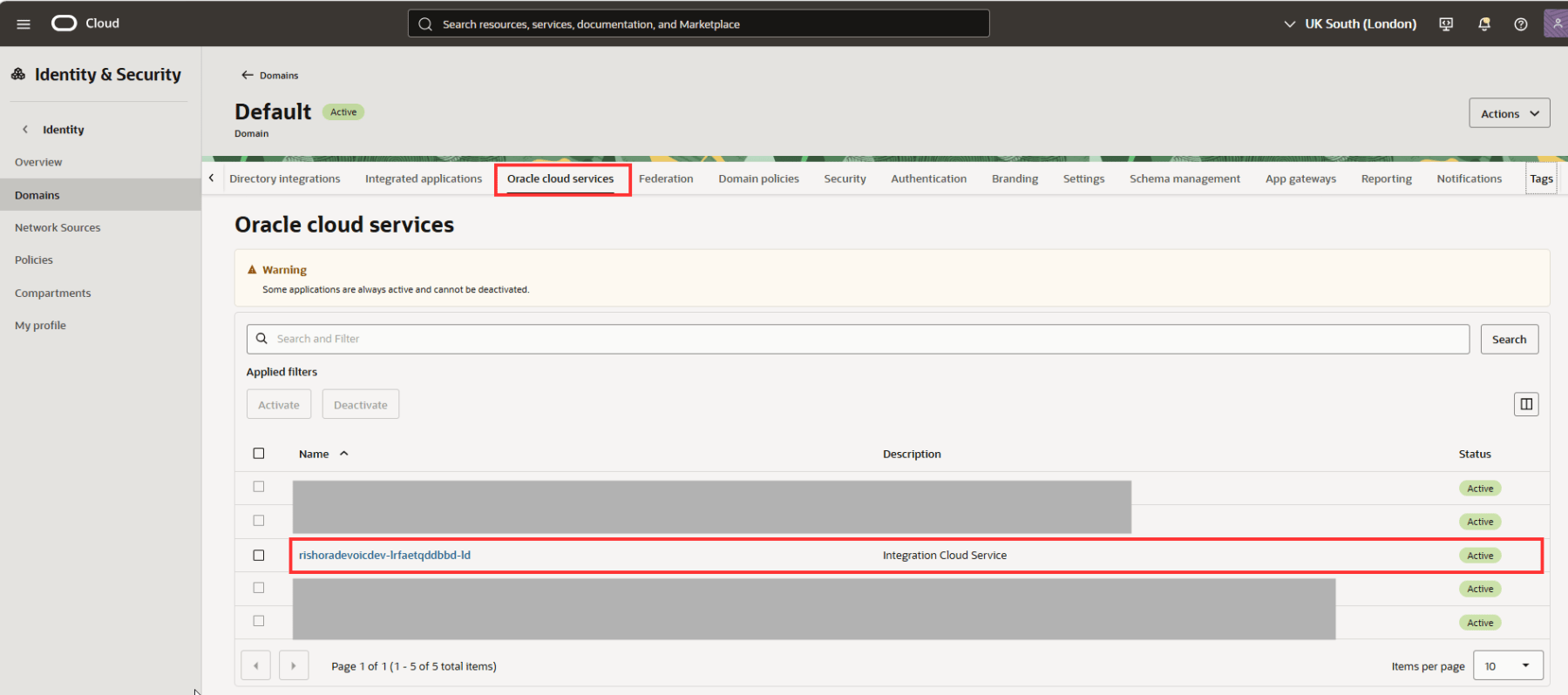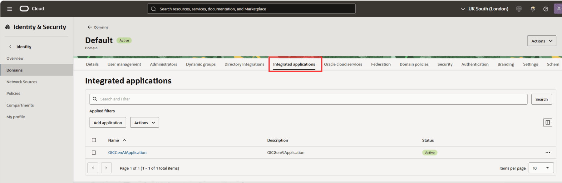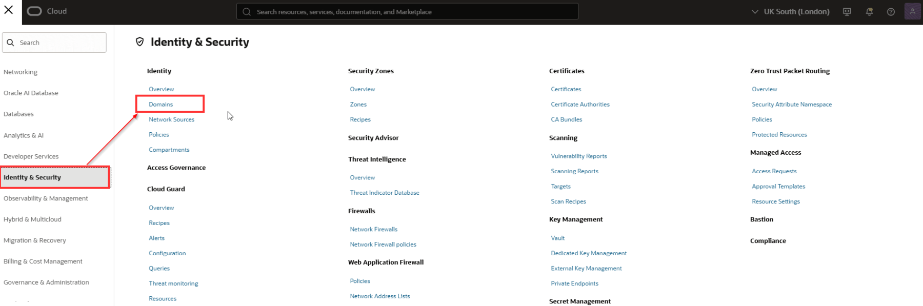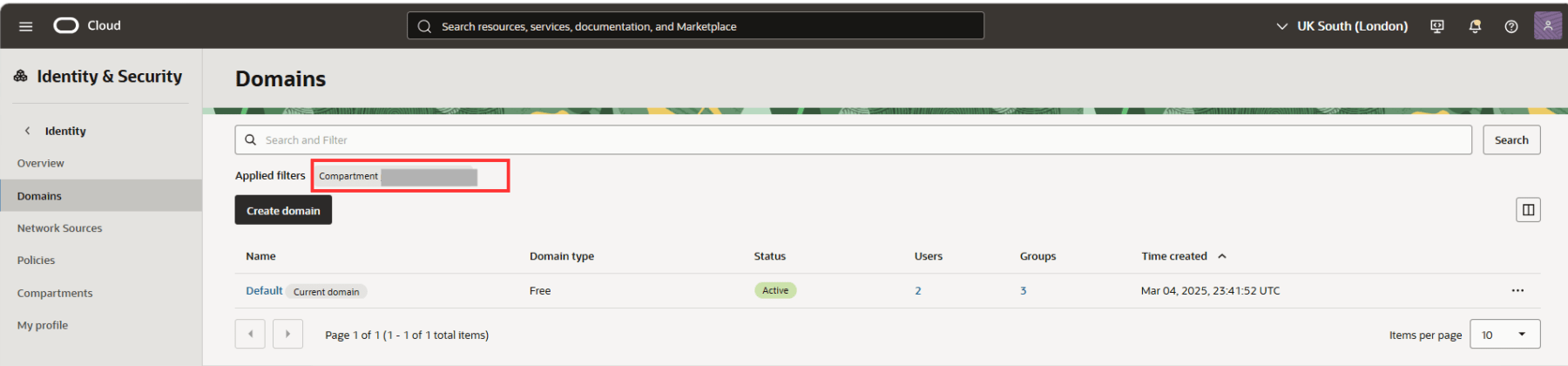 Make sure to select the correct compartment. Navigate to your chosen Domain. In this case, we will chose the Default domain.
