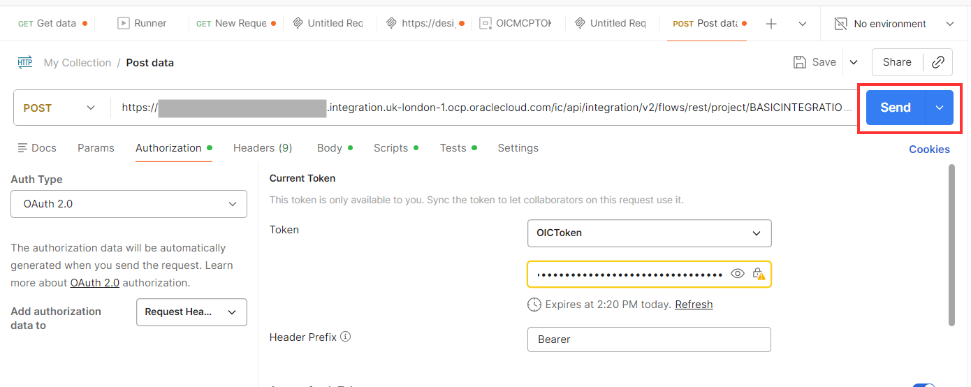 Select the correct request type for your OIC integration type. I’m using the integration which I demonstrated in this blog, which had the request type – POST.