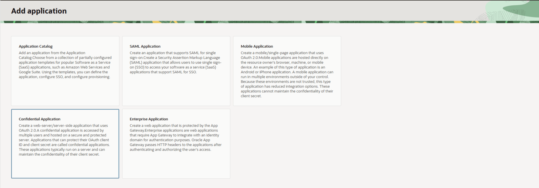 From the application types, we will choose Confidential Application. This is help us to authenticate users using OAuth 2.0. Confidential Application facilitates the protection of OAuth client ID and client secret