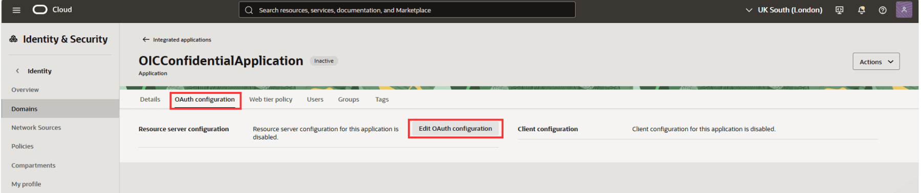 Once the application is created, we now need to complete the OAuth configuration. To do that, navigate to the OAuth configuration tab, and click on Edit OAuth configuration.