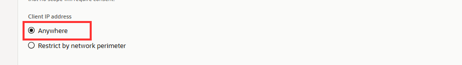 Since this is a basic flow, I will select Anywhere under Client IP address. However, when you are setting up within your organization, you must select Restrict by network perimeter to implement a tighter security.