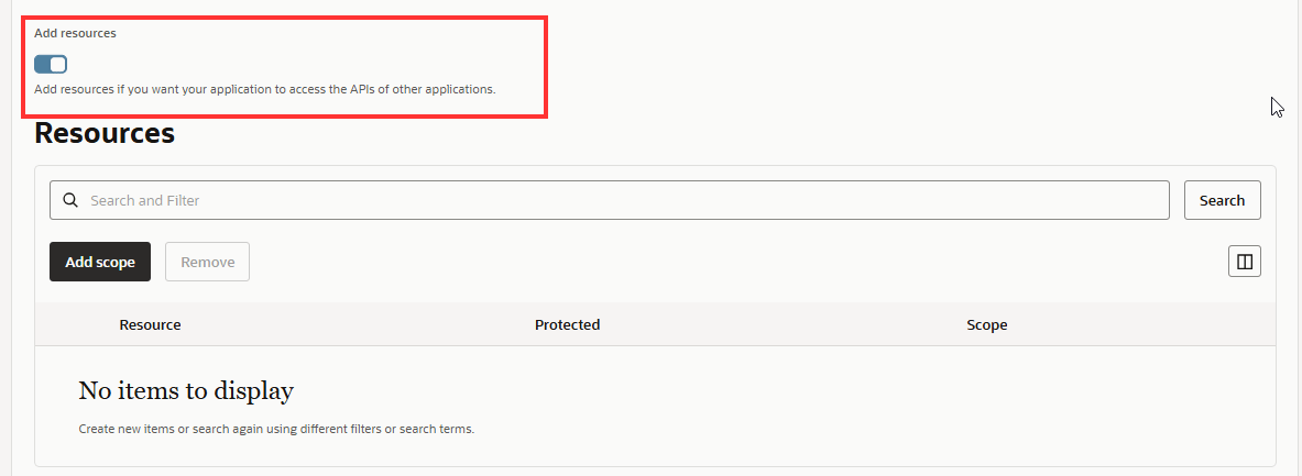 Under Add Resources, enable the slider and click on Add Scope for the confidential application.