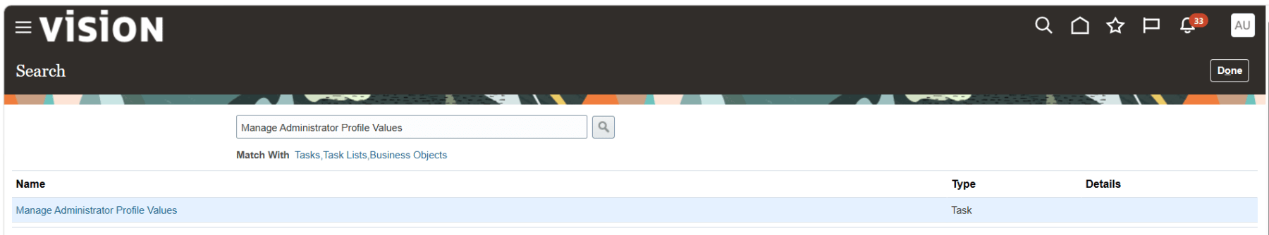 From the global Search, search for the task Manage Administrator Profile Values.
