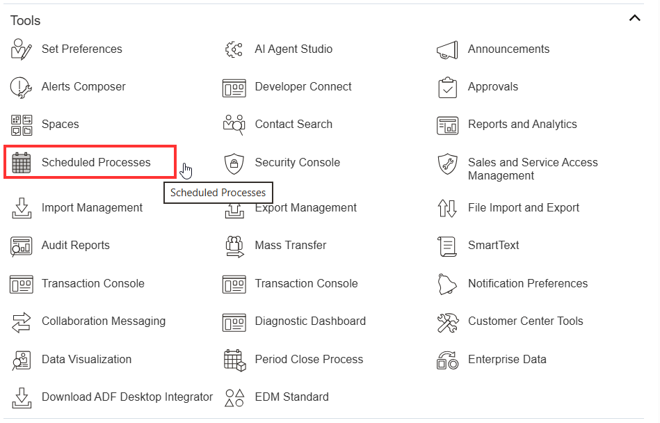 Navigate Tools > Scheduled Processes.