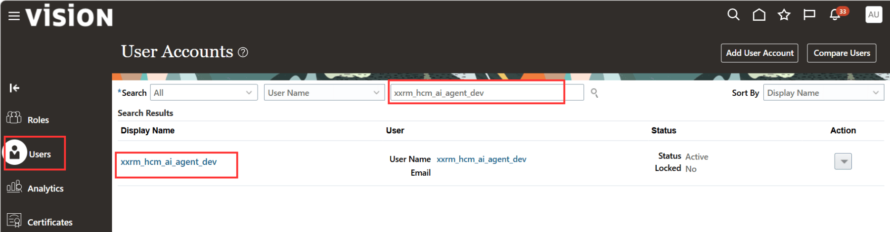 We have already created an user xxrm_hcm_ai_agent_dev.