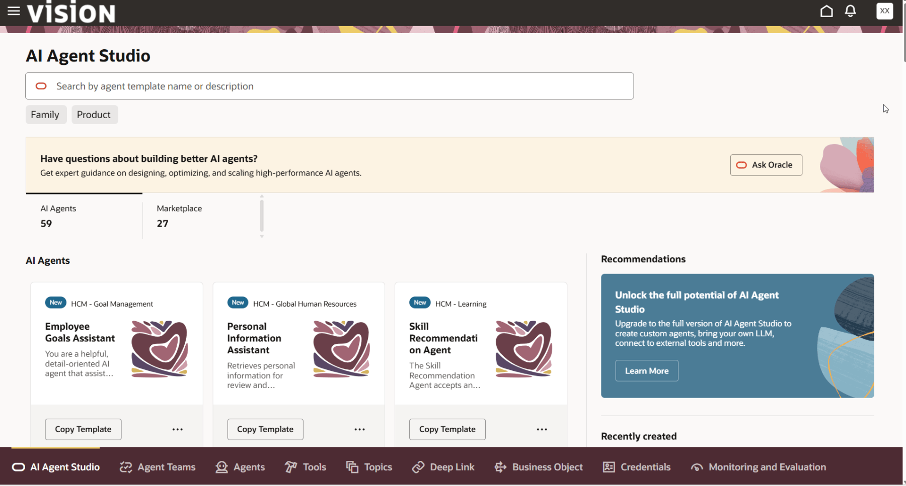 This should redirect you to the AI Agent Studio landing page.